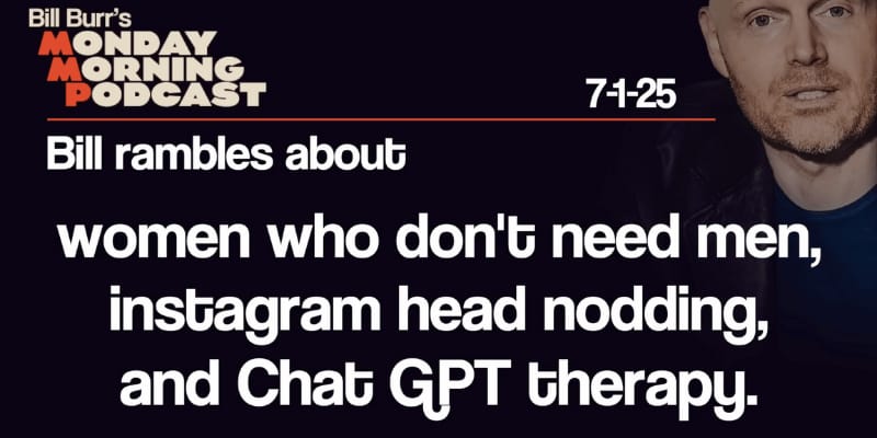 Women, Instagram head nodding, ChatGPT therapy. Comedian Bill Burr riffs on Instagram trends, AI therapy, and social media culture in this offbeat episode.