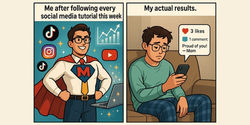 When you finally crack the TikTok algorithm, schedule your content, and master the latest YouTube monetization rules… but your post still gets 3 likes and a comment from your mom.