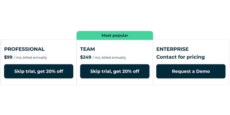 Essentials is $5/month per channel paid annually. Team is $10/month per channel for unlimited users.