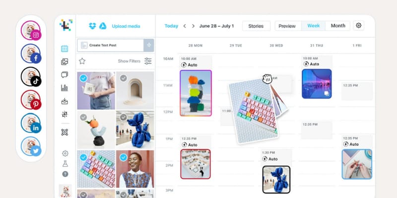 It supports other platforms like TikTok, LinkedIn, Facebook, and Pinterest, but many of its best features are Instagram-only.