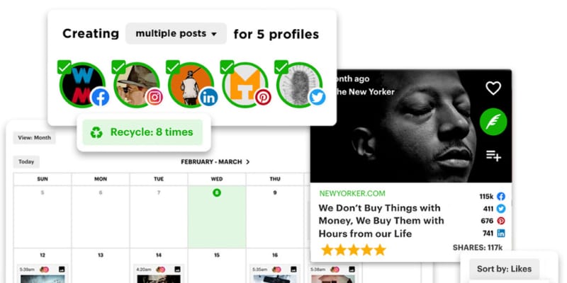 Bulk schedule posts to all social accounts at once, and "recycle" evergreen content on autopilot.