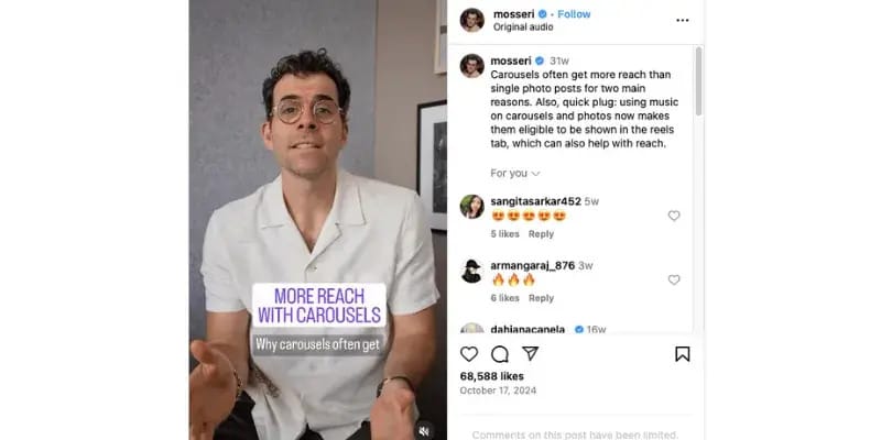 Even IGβs chief says that Instagram carousels with more slides increase your carousels' engagement. The MORE pictures, the BETTER!