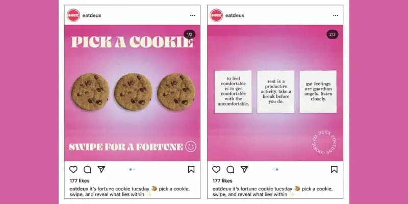 Mixing in photos and videos is a great way to keep your carousels interesting. Make sure your videos are short, sweet, and well-made.