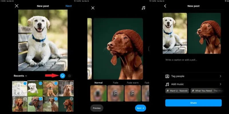 Example: You might post on Instagram 10 times a week. That's only 10 images if you do regular posts. However, carousel posts could make that same week require 100 pictures!