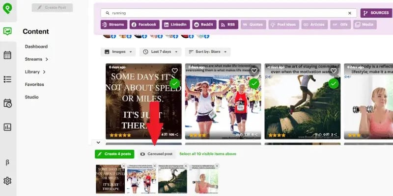 The solution? Instagram scheduling tools like Post Planner can speed up content discovery and automate your Instagram content plan, making it MUCH easier to create multiple carousel posts quickly.