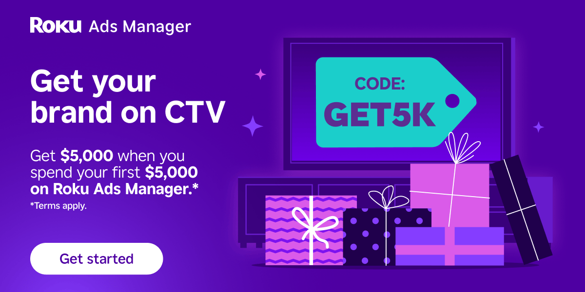 Bonus: we’re gifting you $5K in ad credits when you spend your first $5K on Roku Ads Manager. Just sign up and use code GET5K. Terms apply.