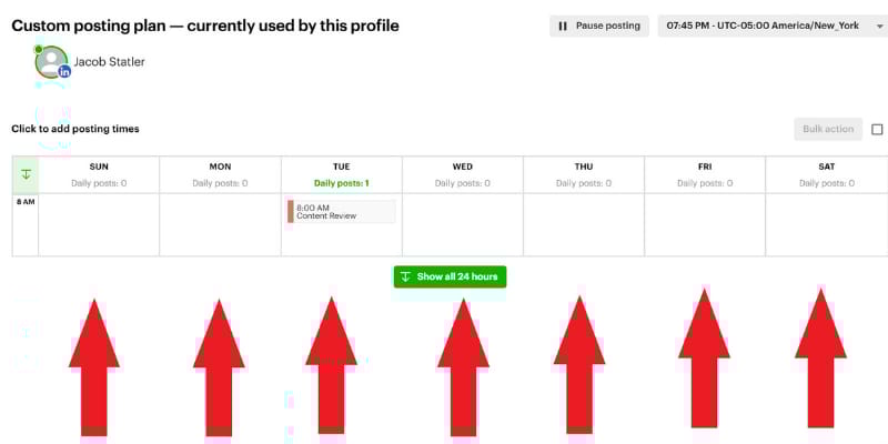 Select "Posting Plan" tab → Choose your LinkedIn account.
