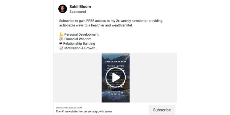 Sahil Bloom (2.5M social followers, 800K email subscribers) is currently running 36 different FB/IG ads to his newsletter. The man knows where the real money is made. 🎯