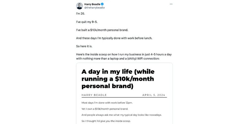 Harry Beadle posts screenshots of his newsletter on X, then drops a call-to-action in the comments once engagement starts rolling in. Zero fancy tech needed, maximum results. 💯