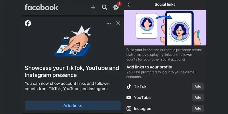 Facebook lets you link to your non-FB social media profiles. You can now showcase verified TikTok, YouTube, and IG accounts on your FB profile.