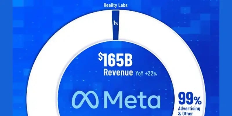 Meta's business breakdown shows that 98% of revenue comes from ads. Spoiler: Meta still runs on ads!